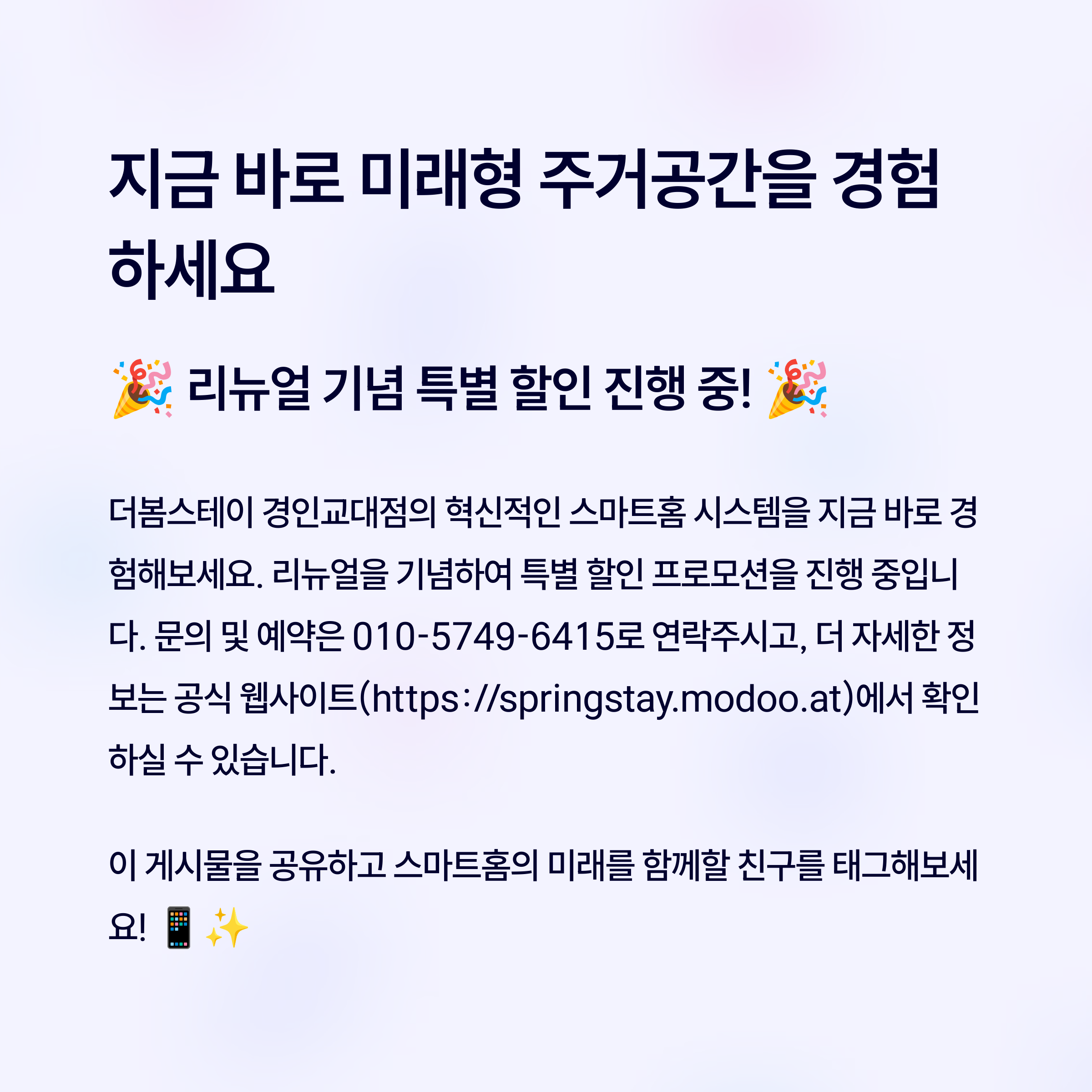 스마트홈의 진화, 이제 원룸텔도 [IOT 보안 시스템]으로 안심하세요 더봄스테이 경인교대점