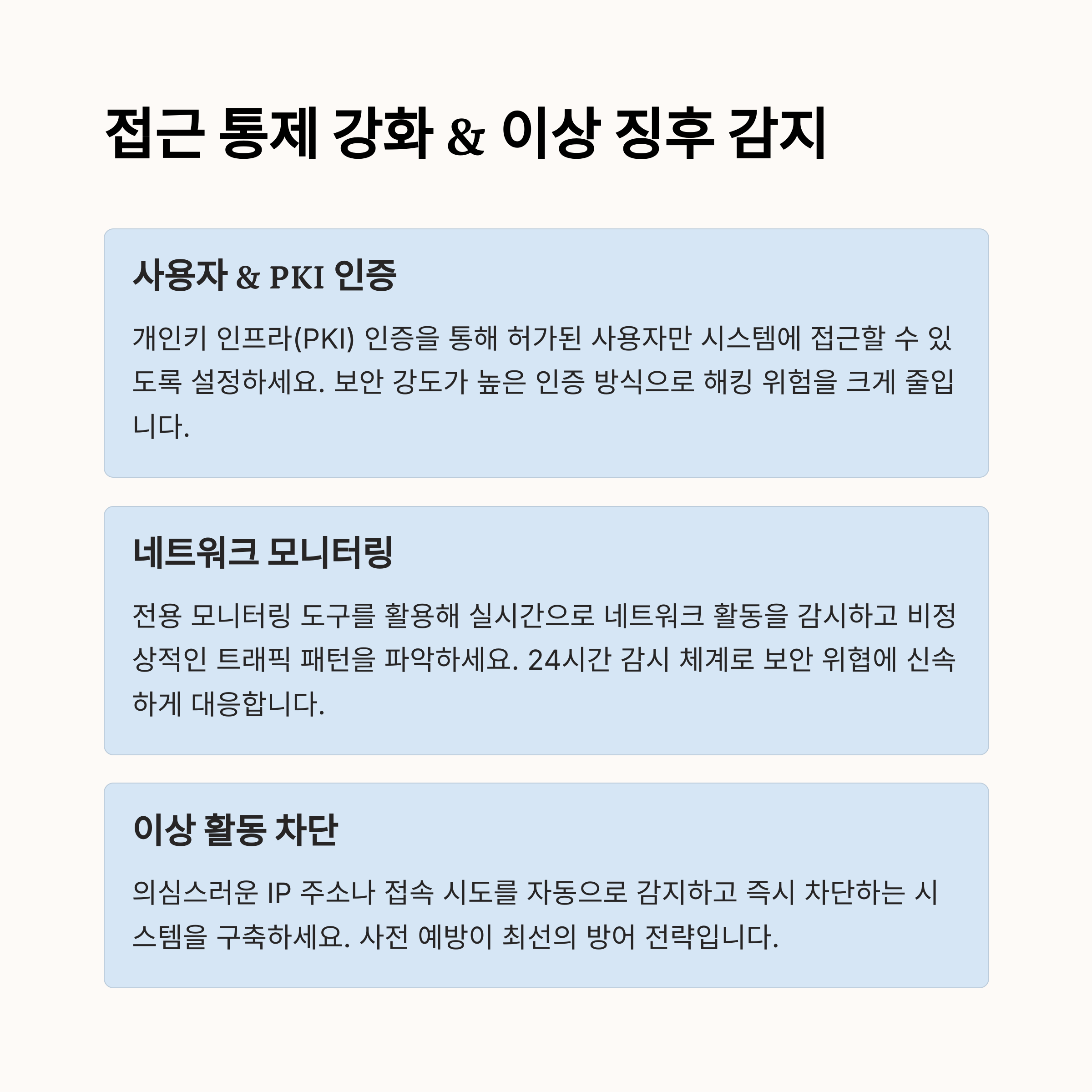 네트워크 모니터링도 중요합니다. 네트워크 흐름을 정기적으로 확인하면 애매한 액세스 시도를 조기에 탐지할 수 있습니다.