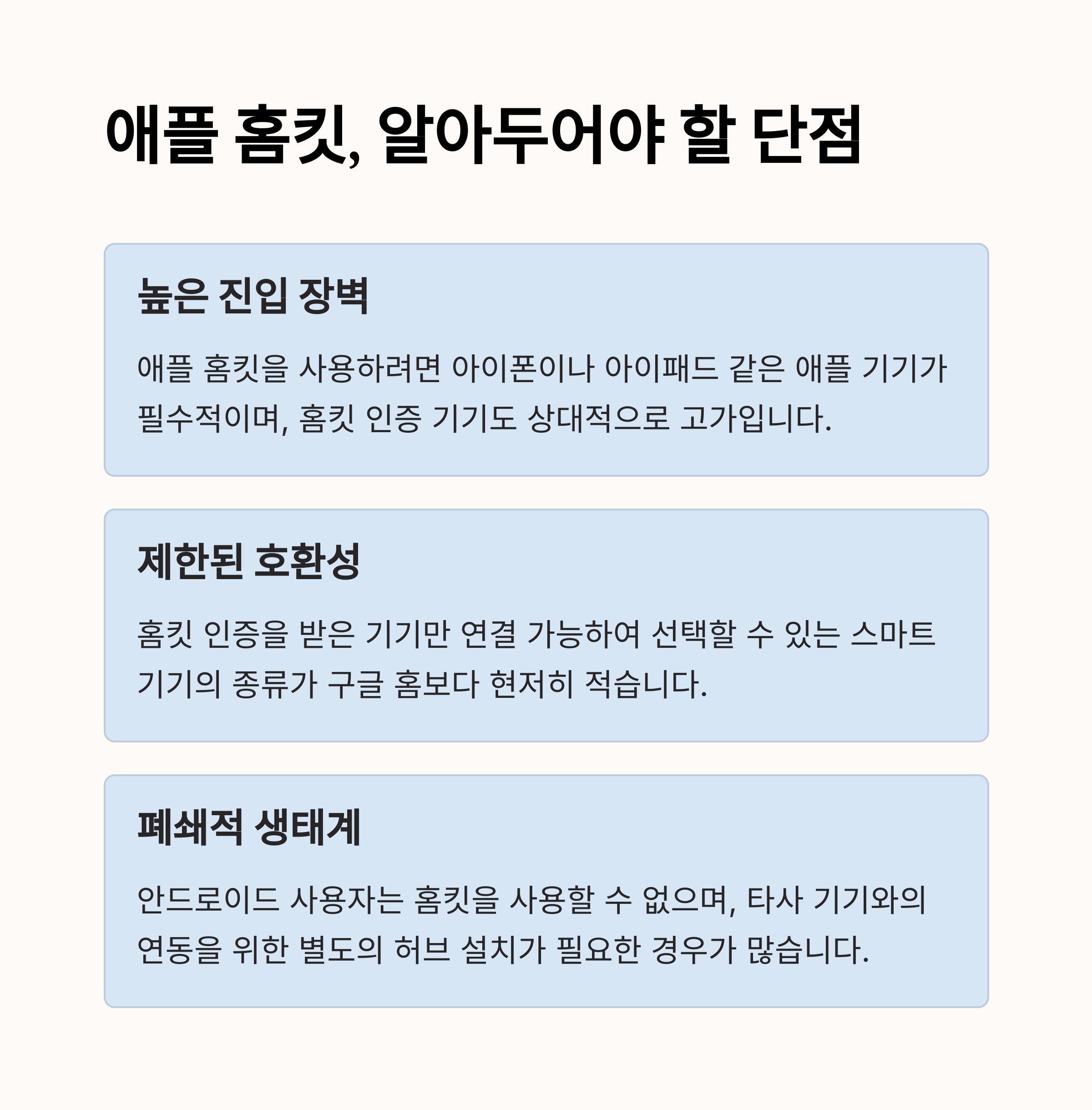 그러나 애플홈킷은 사생활 보호를 우선시하며, 애플 생태계를 사용하는 사용자에게 더욱 매력적입니다.