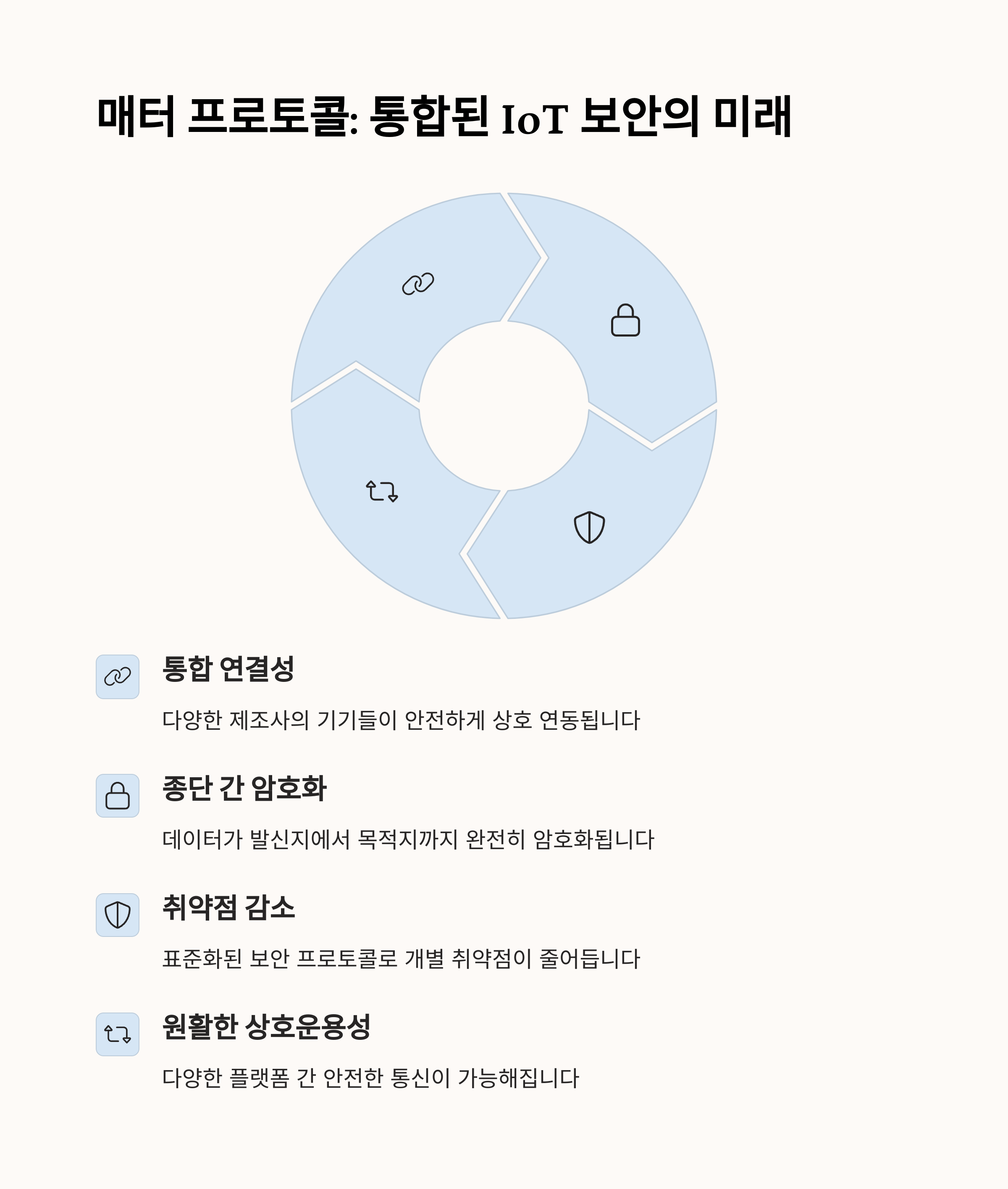 매터 프로토콜은 IoT 기기간 호환성을 높이고 강력한 보안을 제공합니다.