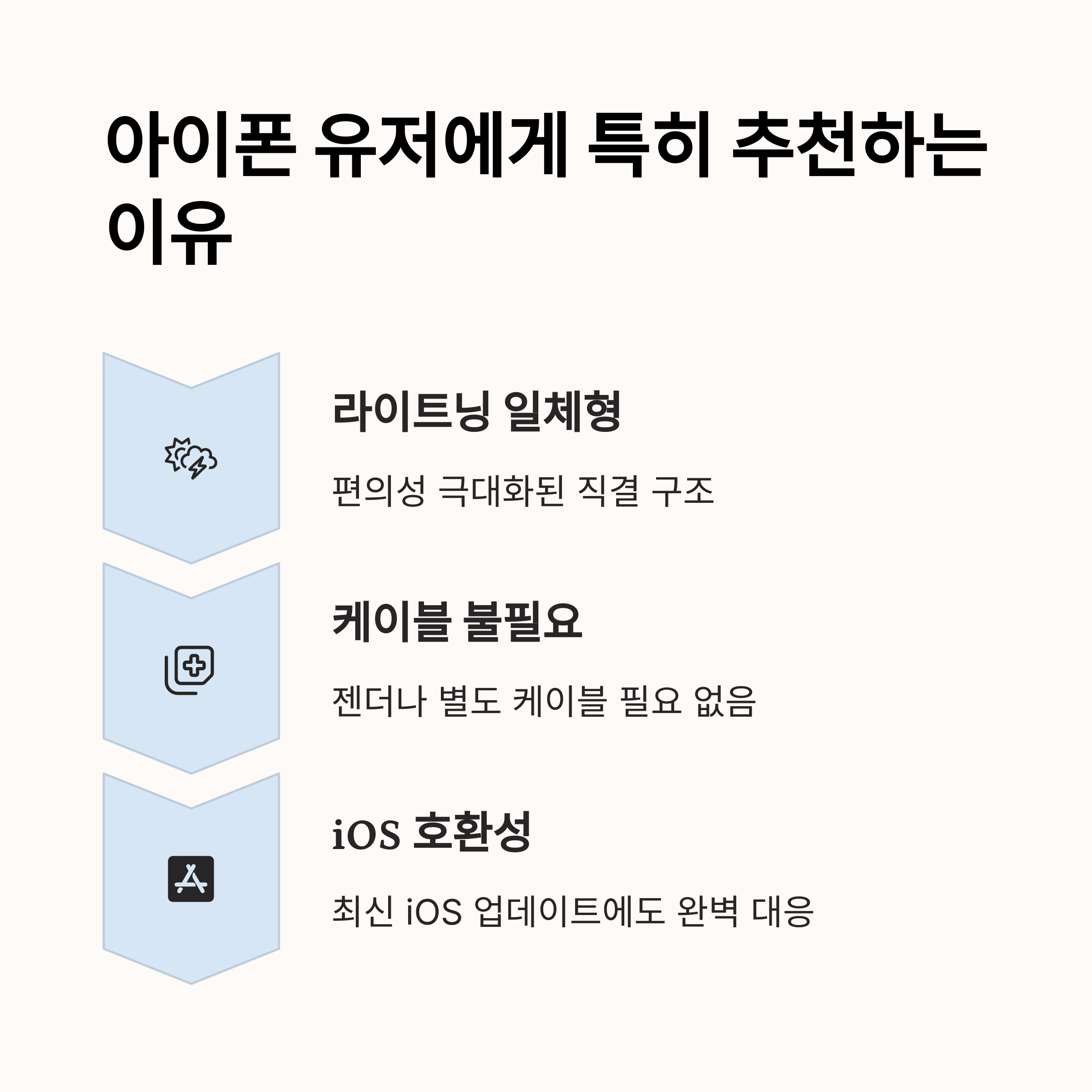 별도의 변환 젠더 없이 기존 아이폰 케이블만으로 충전이 가능하다는 것은