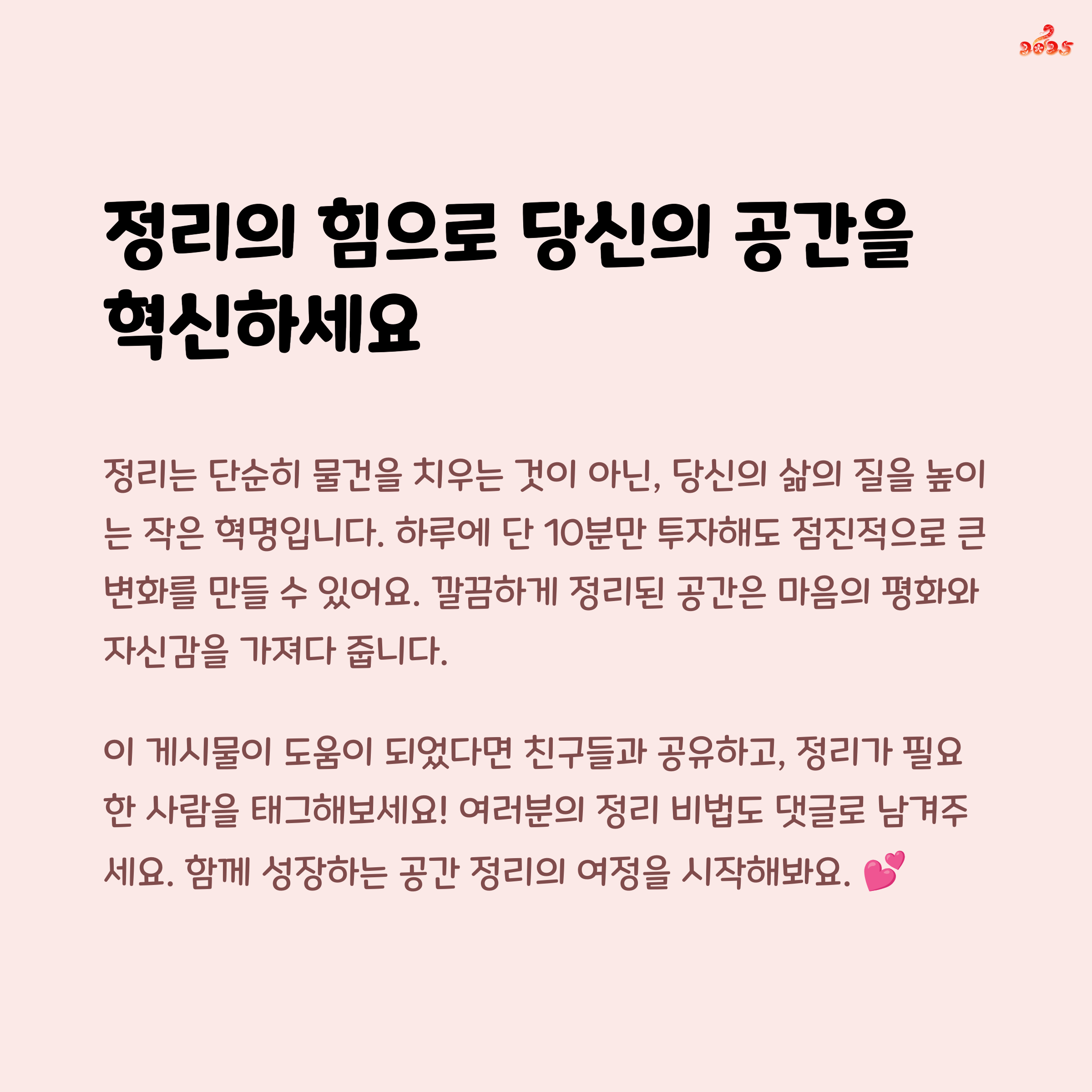 공간 정리는 단순히 깔끔한 집을 만드는 것 이상입니다.