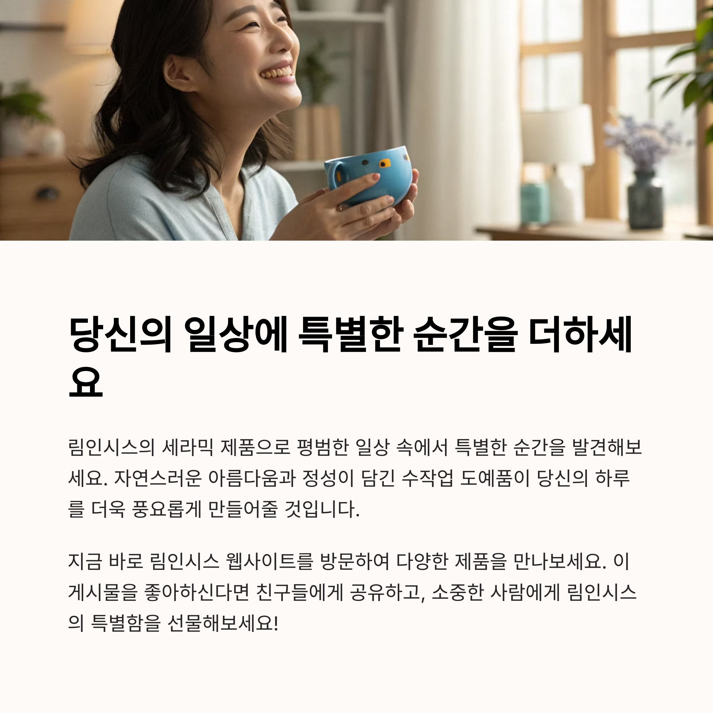 림인시스 제품은 단지 그릇이 아닌, 순간을 특별하고 오래 기억하게 만드는 도구입니다.